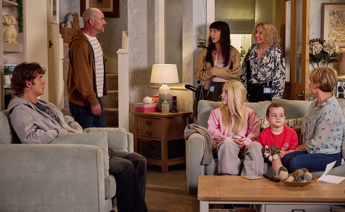 They’re soon interrupted by the arrival of social worker Dawn (Yazmin Kayani), who has come to check on the kids, accompanied by psychologist Alison (former Emmerdale actor Glenda McKay).