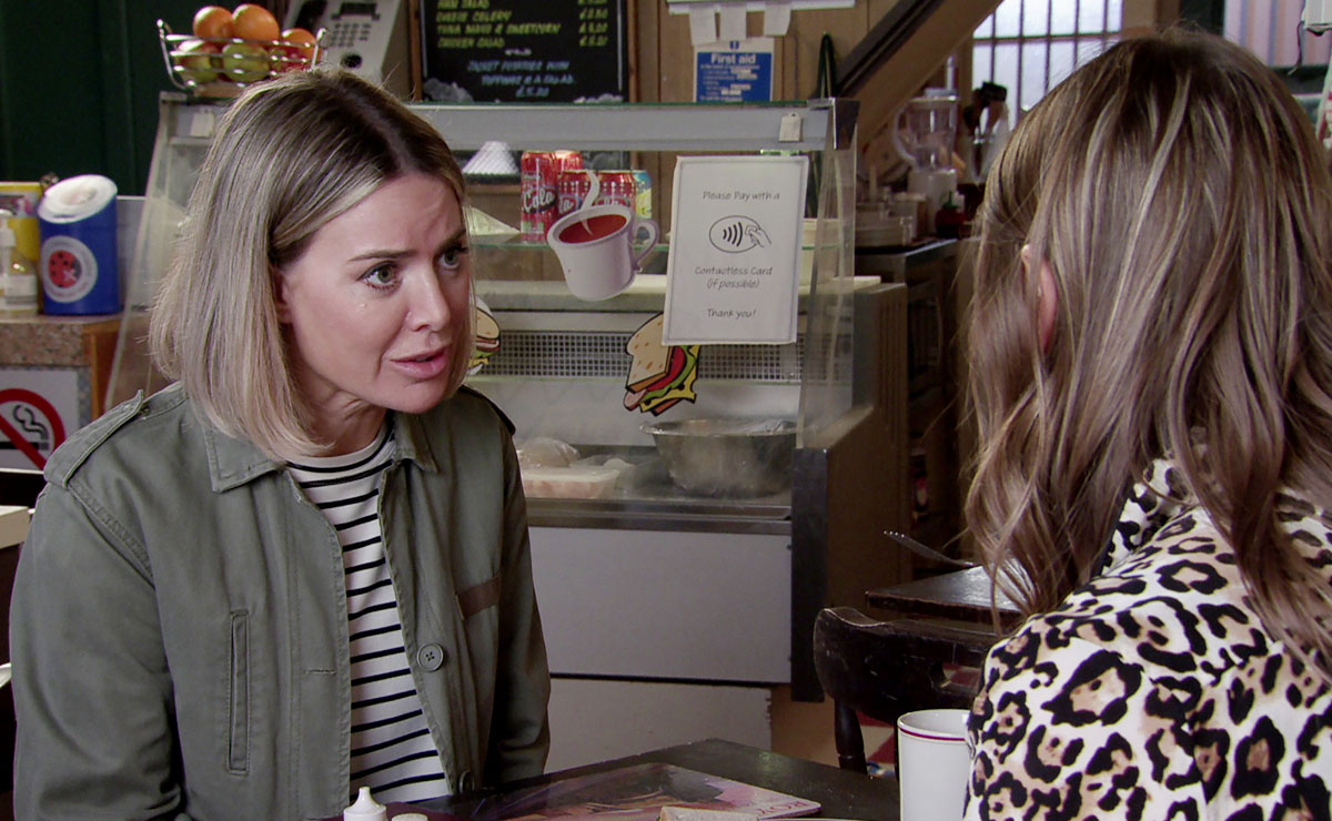 When Abi later catches up with Tracy in the café, despite Tracy having made known her plans to profit from her knowledge of their affair, Abi opens up about her dilemma. She admits she never set out to fall for Carl but it happened anyway—and now she’s terrified of hurting Kevin.