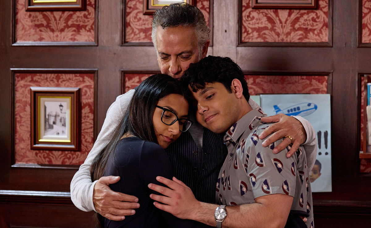 As Dev pulls his kids in for a group hug, it all becomes too much for Asha as she breaks off and hurries out to the Rovers backyard.