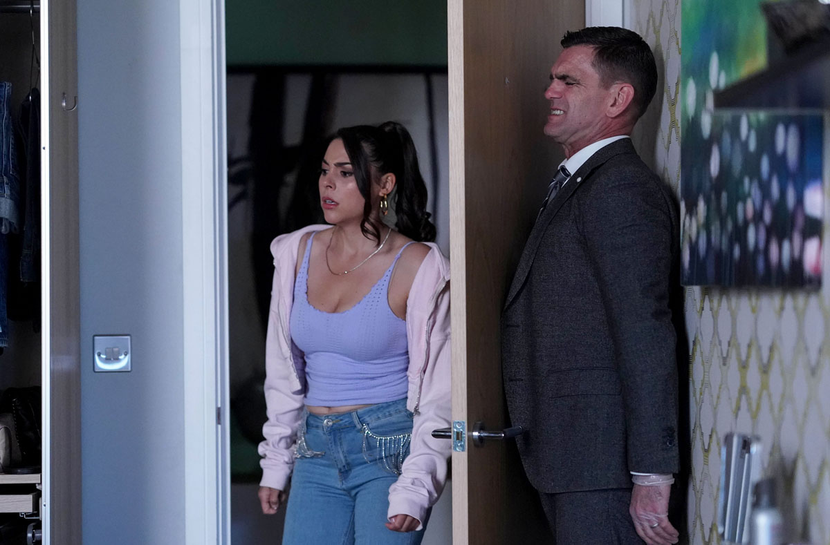 He then sneaks into No. 5A – home to Ravi, Nugget (Juhaim Rasul Choudhury), Avani (Aaliyah James) and Priya (Sophie Khan Levy) – but he’s forced to hide when Priya arrives home unexpectedly!