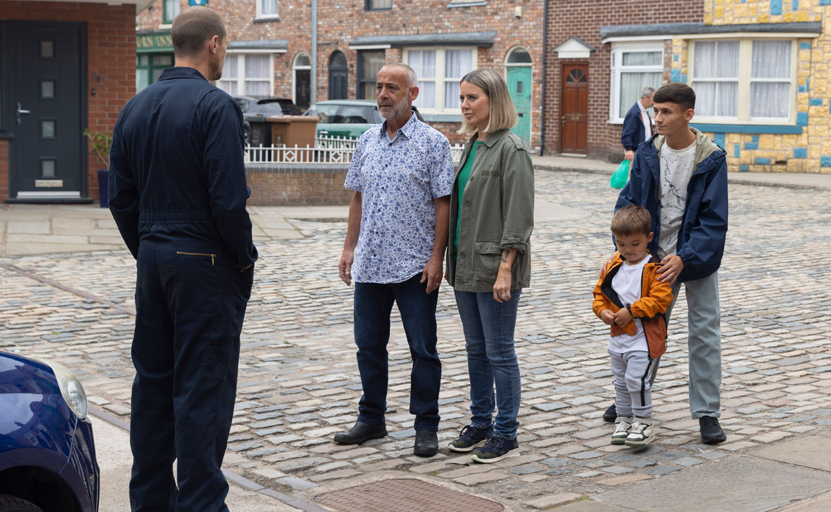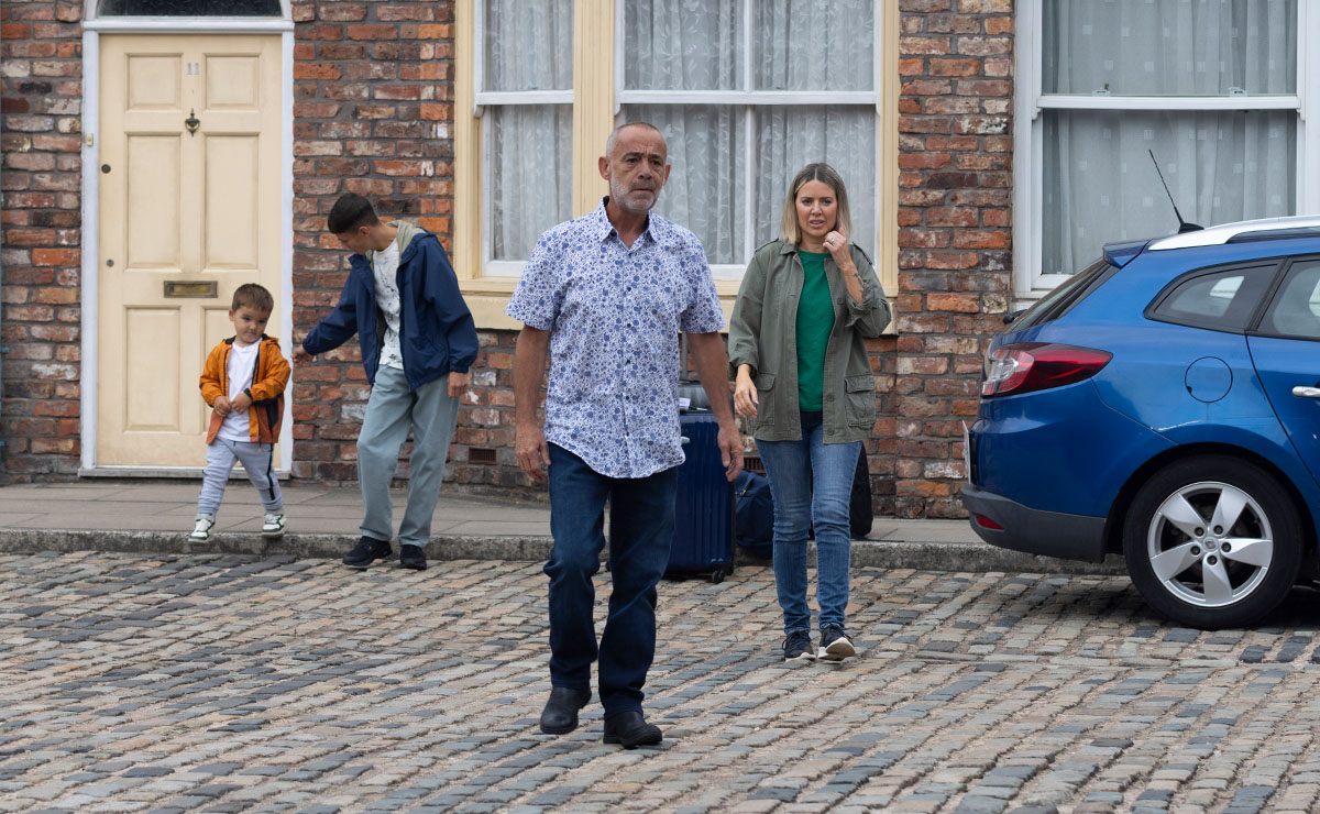 As the week kicks off, Kevin (Michael Le Vell) and Abi (Sally Carman-Duttine) return from their trip to Mallorca with kids Jack (Kyran Bowes) and Alfie (Carter & Oakley Razak Townsend) in tow.