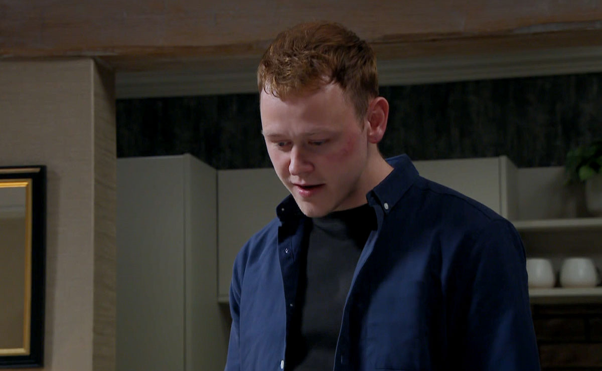 Eventually catching up with Claudette in the back room of The Woolpack, Liam admits that he’s been having issues with holding his urine recently.