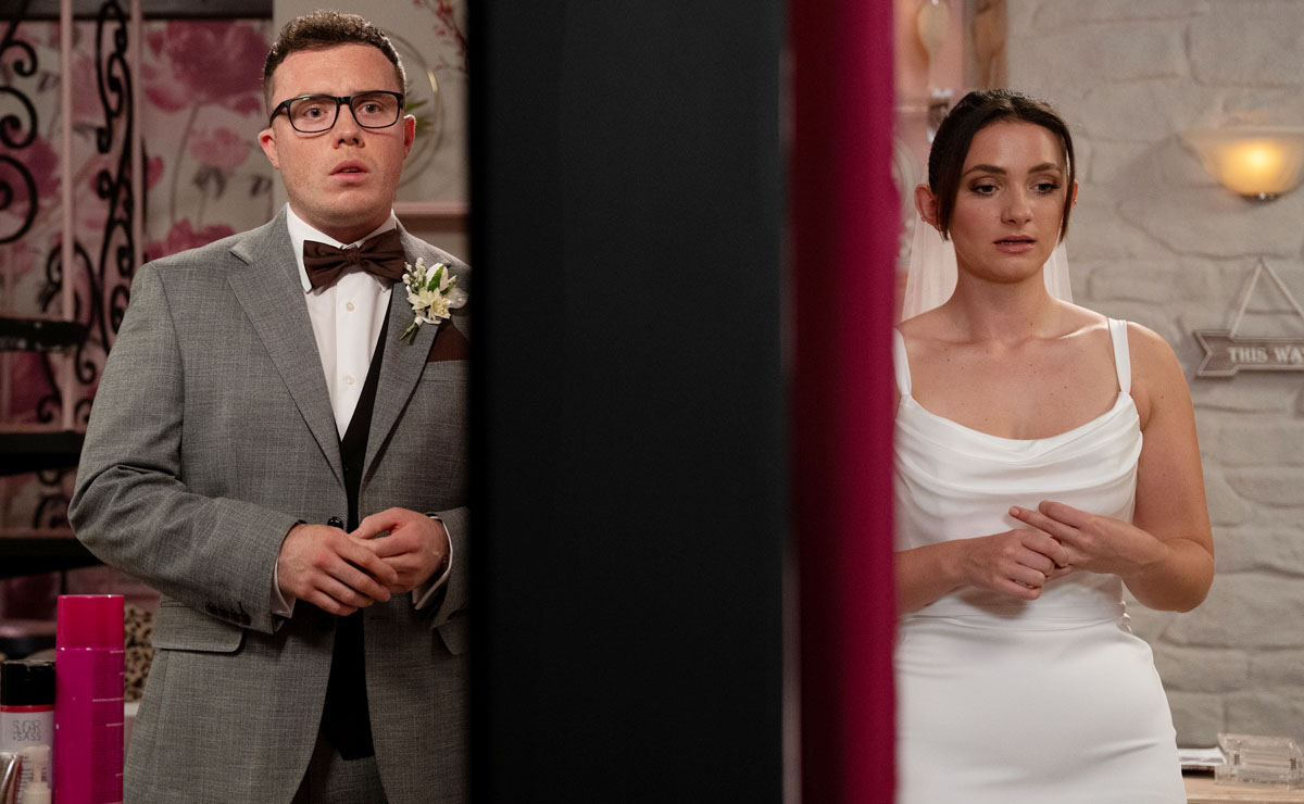 Next week on Emmerdale, Gabby’s devastated as Vinny goes AWOL on their wedding day, Bernice and Bob reminisce, and Claudette finds Liam in an awkward position.