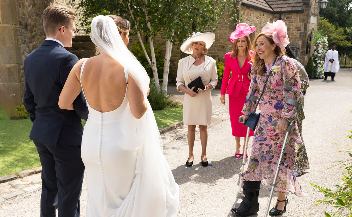 Over at Mulberry Cottage, having been adamant that she wasn’t going to attend the wedding after Gabby betrayed her, Kim (Claire King) has had a change of heart and joined Laurel (Charlotte Bellamy) and Arthur (Alfie Clarke) as they wait for Gabby to make her big entrance.