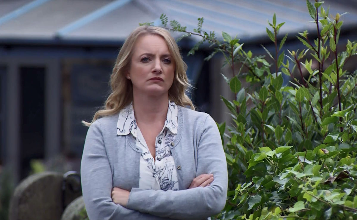 Also next week, after putting an end to their partnership with the Sugdens, Moira (Natalie J Robb) and Ross (Michael Parr) are intrigued when Celia (Jaye Griffiths) pops over with another business proposition.