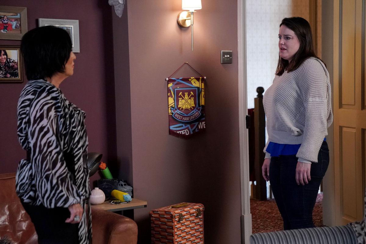 Sharon refuses to believe Zoe after her shock confession in Tuesday’s episode. She loses her temper, prompting Kat to chuck Sharon and Vicki out of the pub.
