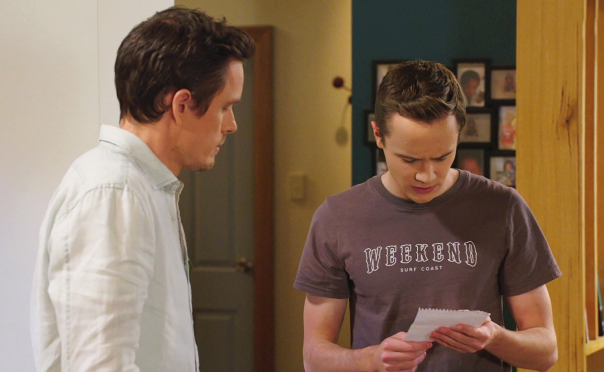 When Felix (James Beaufort) discovered a gun in Greg’s sports bag, he handed it to Andrew, who confronted Greg and got the truth out of him.