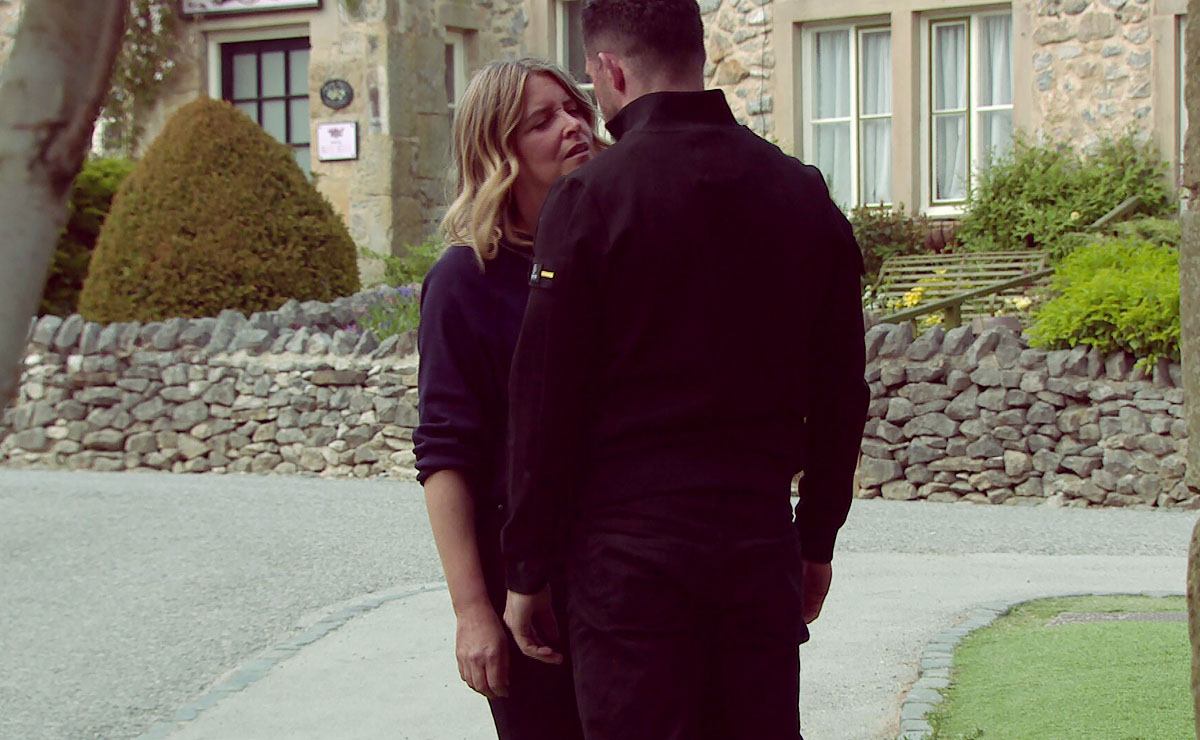 Over at Tenants Cottage, it’s been three months since Bear (Joshua Richards) left the village after a falling out with son Paddy (Dominic Brunt), telling him he was off to stay with an old friend in Ireland.