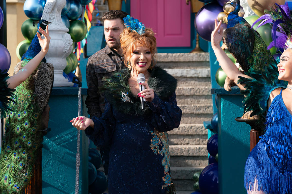 Next week, the new hotel’s grand opening gets underway, with Johnny (Charlie Suff) giving his mum a last-minute pep talk before she heads into the square for her flamboyant launch.