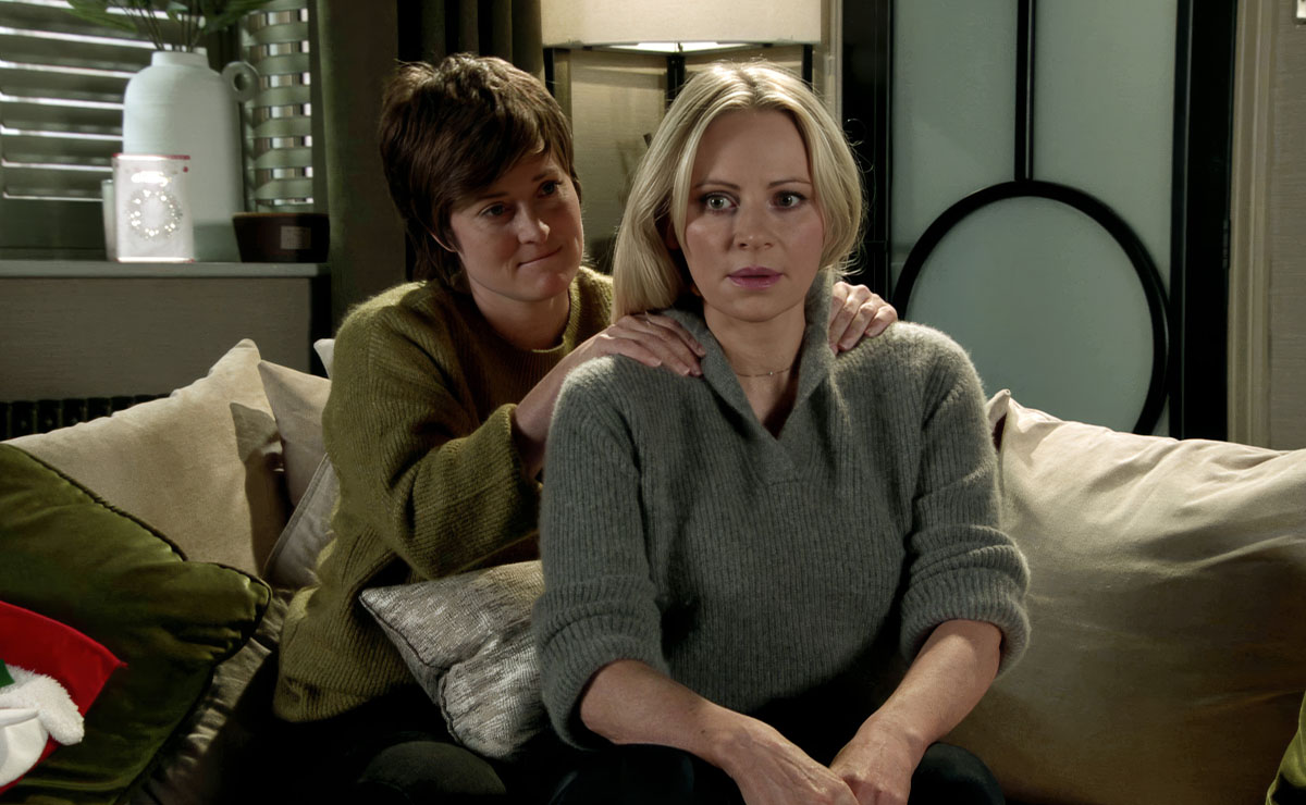 The festive spirit is soon broken by a text from Roy (David Neilson) however, revealing that Carla never actually checked into her hotel in Lanzarote… news that immediately leaves Lisa deeply uneasy…