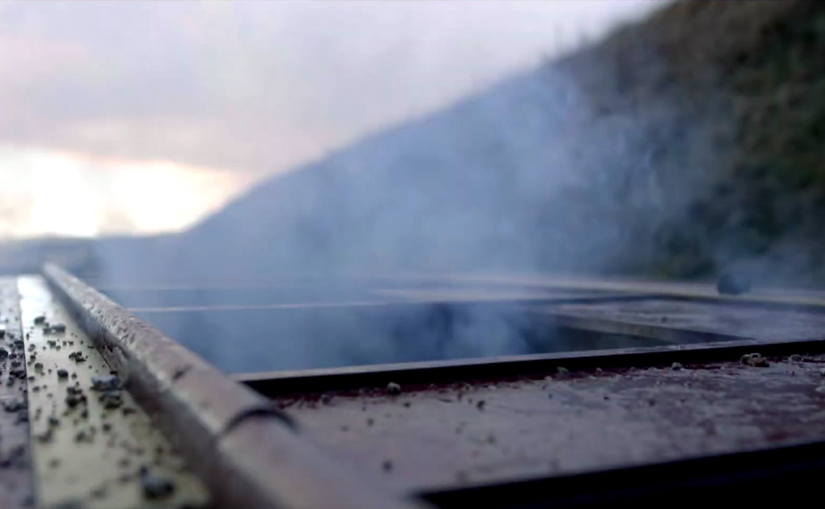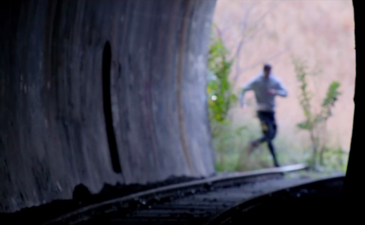 Shortly afterwards, the train headed towards a tunnel, where a small group of teens were spraying graffiti. Spotting the train, they fled, leaving their bicycles sprawled across the track.