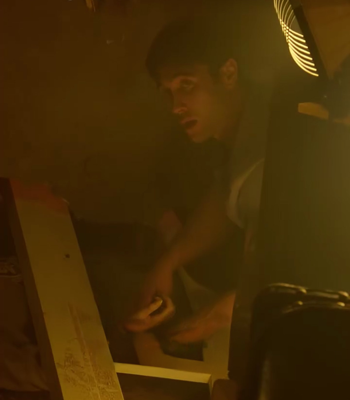 Eddie, who has been trying to help Jo up until that points, panics and flees the train before the whole ceiling collapses.