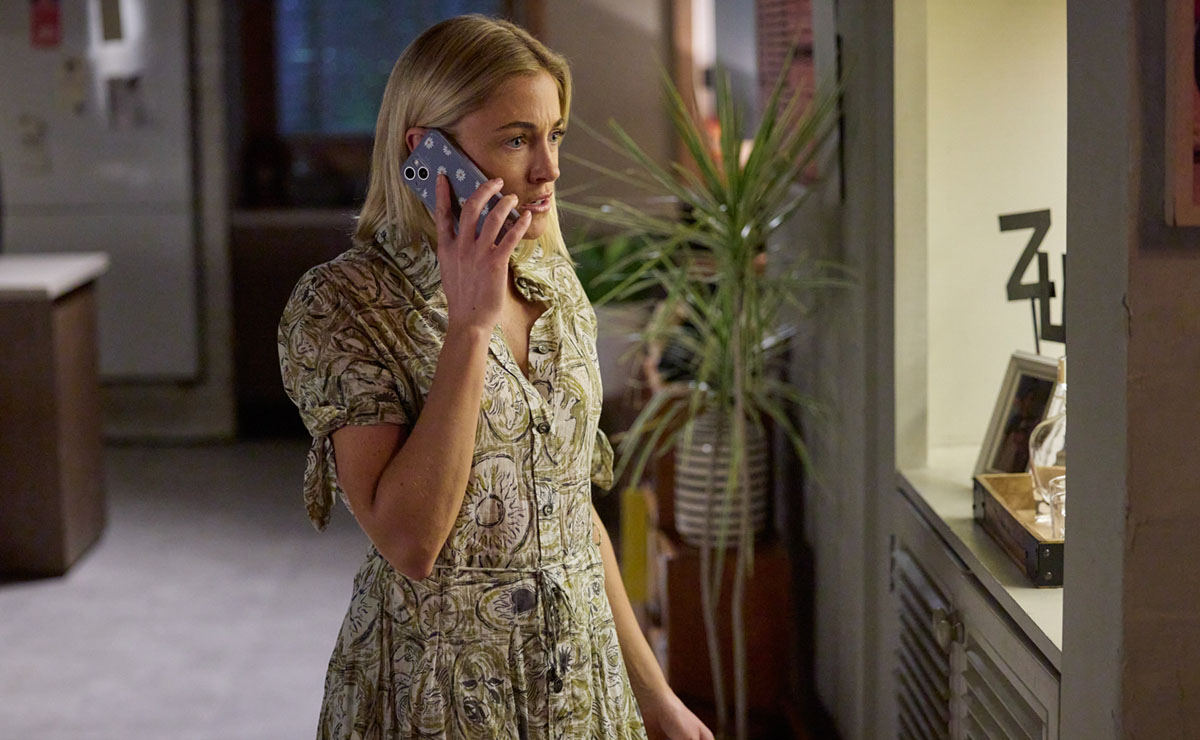 Harper clocks Kerrie stepping in beside him and immediately panics. She rushes over, trying to steer Kerrie back towards the door before Dana notices, but as Kerrie greets her it’s too late.