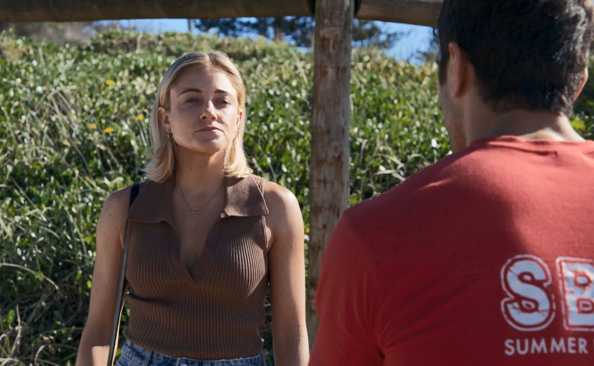 Her wandering eventually brings her to the beach, where she meets John (Shane Withington). Unaware of who he’s dealing with, John offers his usual warm welcome and insists on giving her the grand tour of Summer Bay, offering her a ride on the CAN-AM.