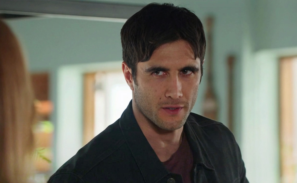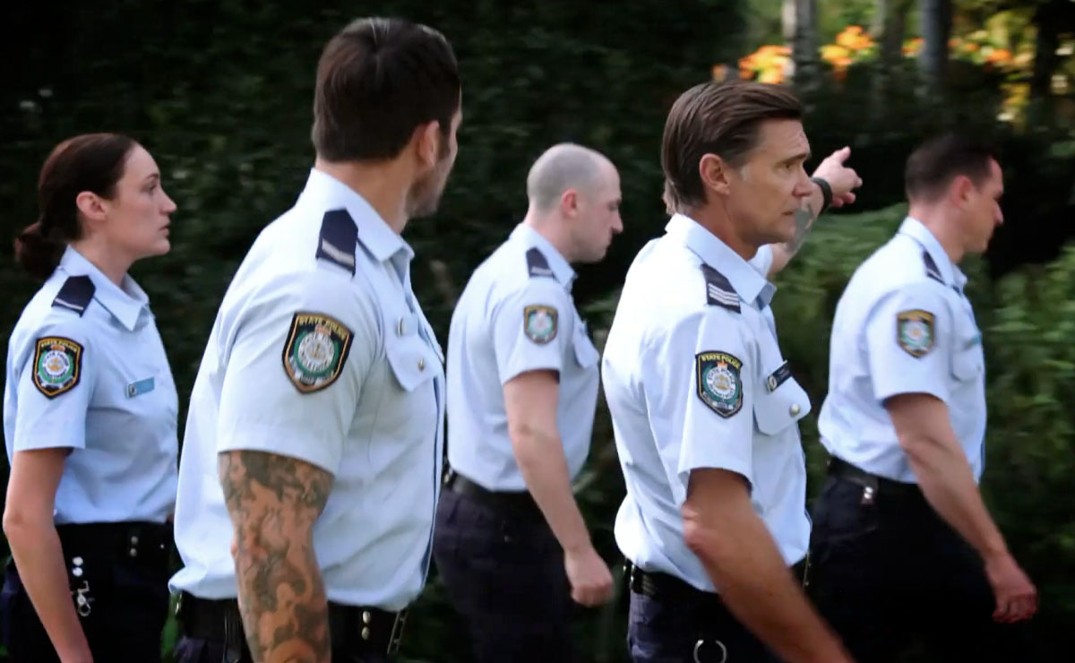 Later, Tane and Jo are in bed when they’re interrupted by a loud knock on the door. It’s Jo’s dad, David (Jeremy Lindsay Taylor), but it’s not a social visit. The sarge is with a team of officers and has a warrant to search the premises following an anonymous tip-off!