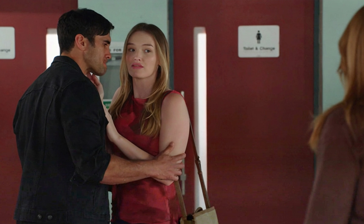 Approaching Tane and new girlfriend Jo (Maddison Brown) in the surf club, Kerrie makes clear her stance.