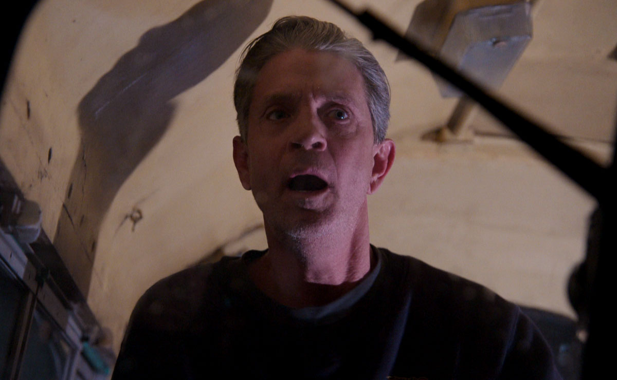 The train driver—an uncredited cameo for one of the show’s 1st Assistant Directors, Matt Grossman—is horrified as he spots the danger up ahead and slams on the brakes.