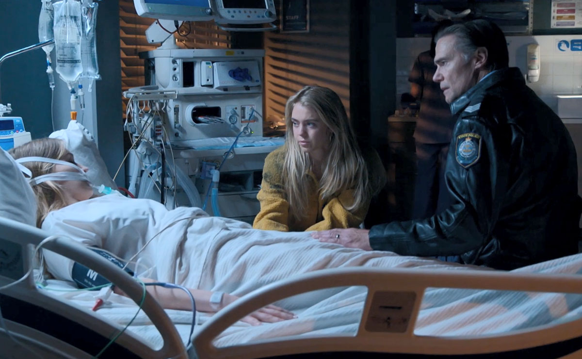 At the hospital, Eden (Stephanie Panozzo) assists in her role as a police volunteer, working through the passenger list and gathering updates as victims are identified.
