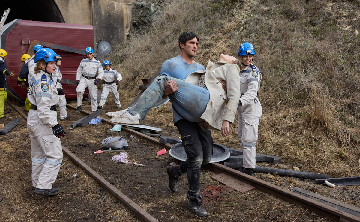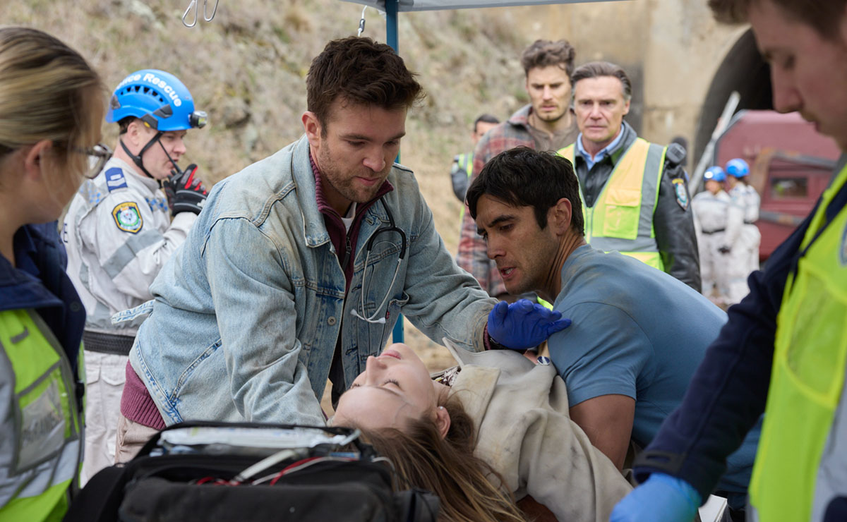 After Levi left the tunnel to gather more medical supplies, the carriage shifted, moving the piece of roof with it. Knowing that it was now a ticking time-bomb before crush syndrome set in, Levi was desperate to get back into the carriage, only to be stopped by Jo’s dad David (Jeremy Lindsay Taylor), Cash (Nicholas Cartwright) and rescue leader Alison (Lulu Howes), who deemed it too dangerous.
