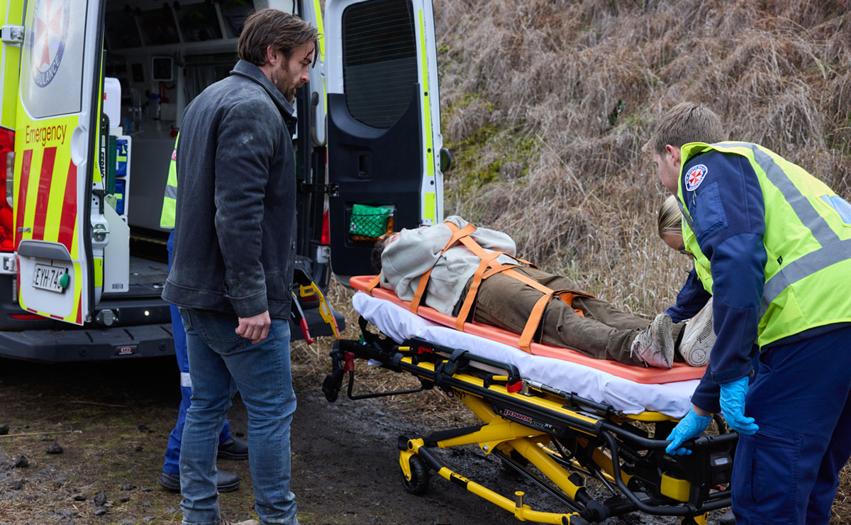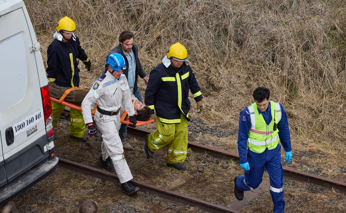 Next week, we return to the scene as Peter (Kurt Ramjan) and fellow paramedics carry Sonny on a spinal board into the ambulance. Remi walks alongside, insisting on accompanying his mate to hospital.