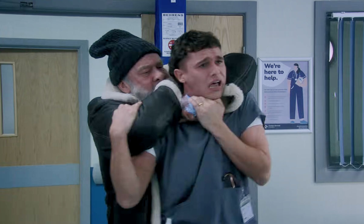 Frustrated by the long wait, Bear lashed out and almost strangled student doctor Jacob (Joe-Warren Plant), thankfully coming to his senses before any harm was done.
