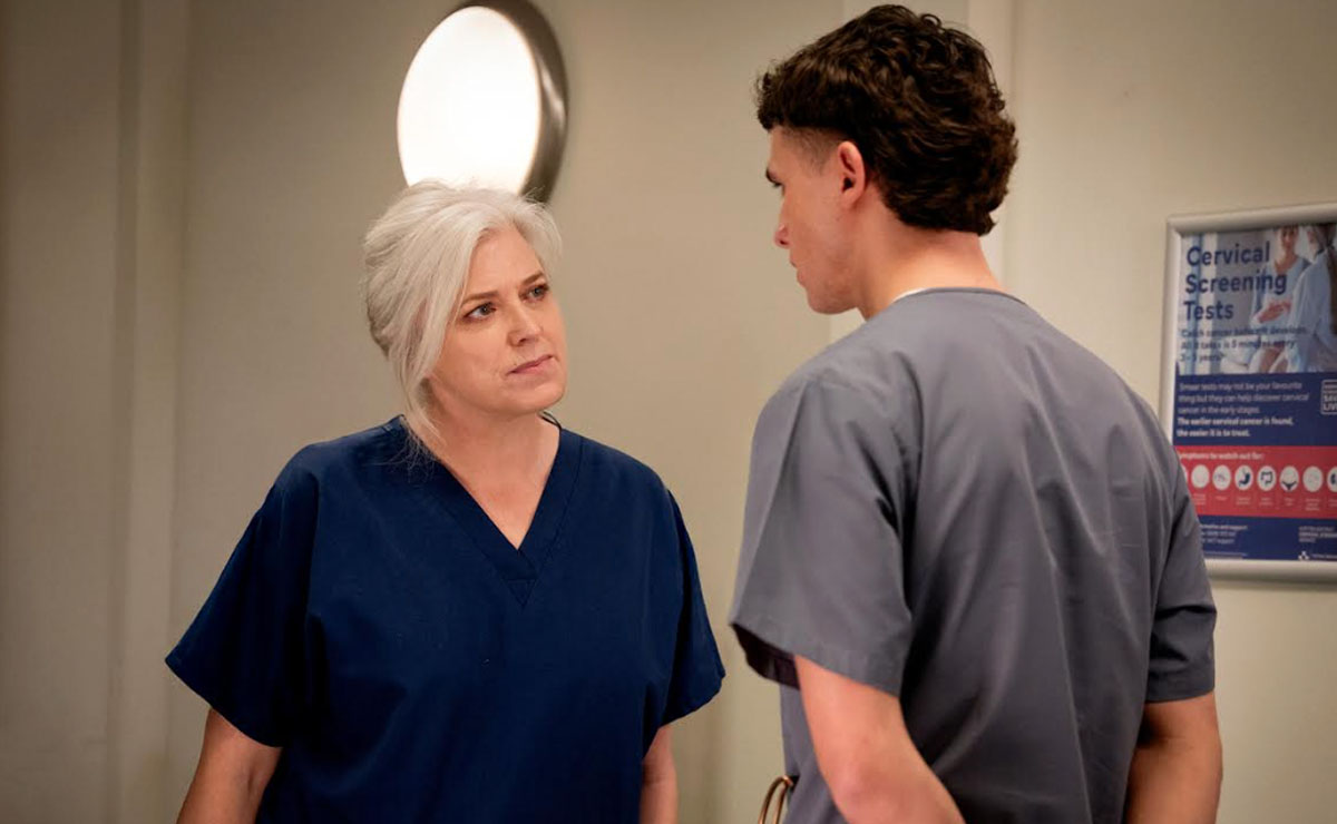 Frustrated by her constant scrutiny, Jacob opens up to Eric (Chris Chittell) about Dr Todd—questioning her methods and admitting how difficult he’s finding working under her. But he’s mortified when he realises too late that Dr Todd is standing directly behind him in the pub, and has heard every word!