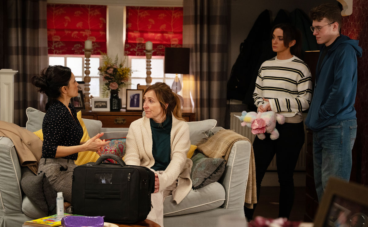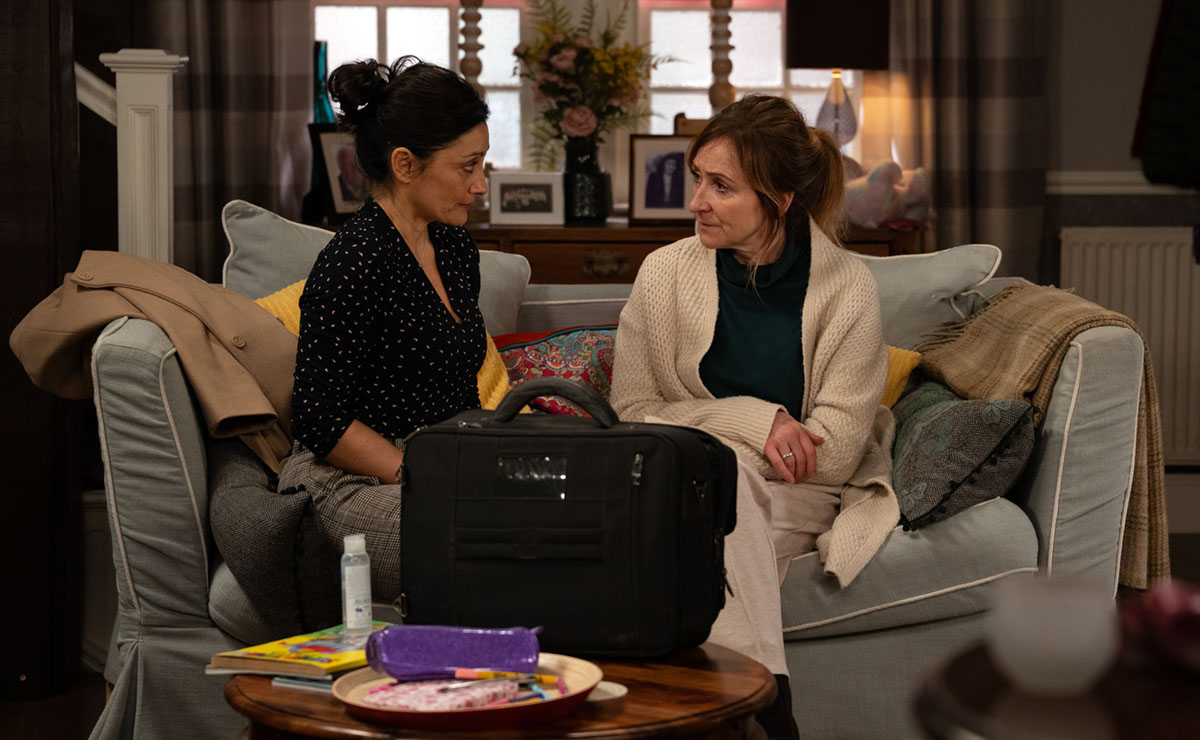 Later, GP Manpreet (Rebecca Sarker) calls round on a home visit and, sensing something doesn’t quite add up, asks to speak to Laurel alone—sending both Gabby and Arthur out of the room.