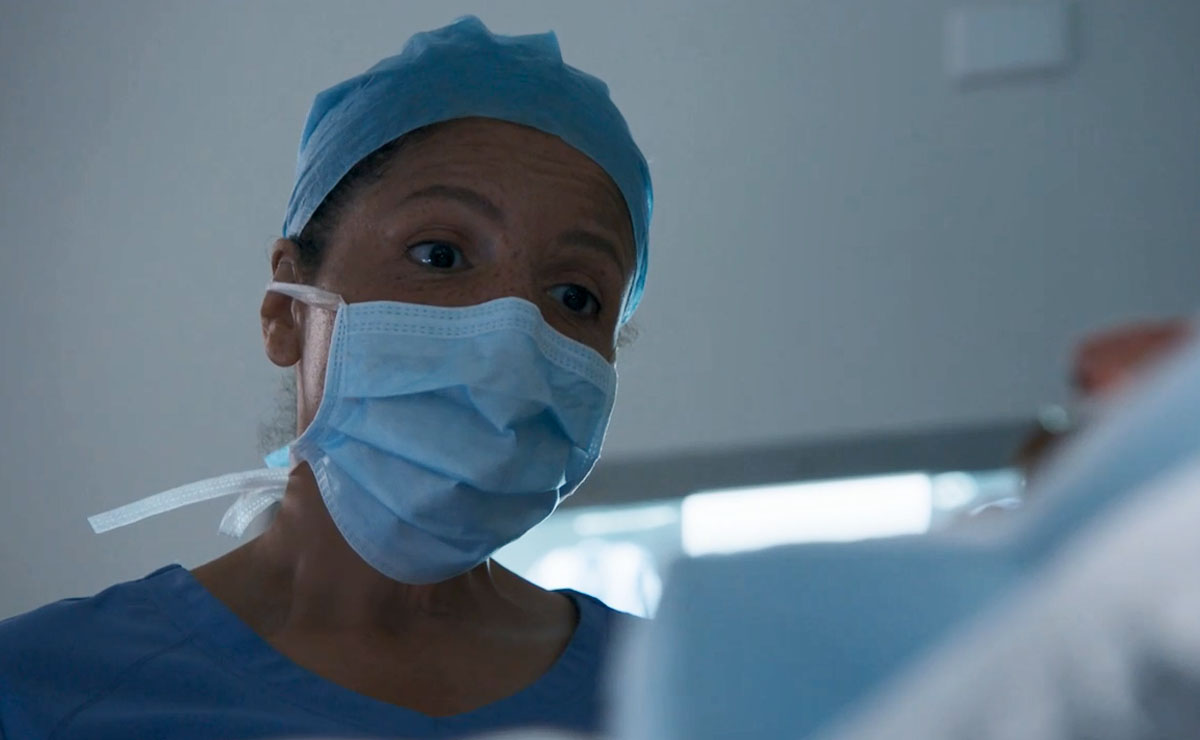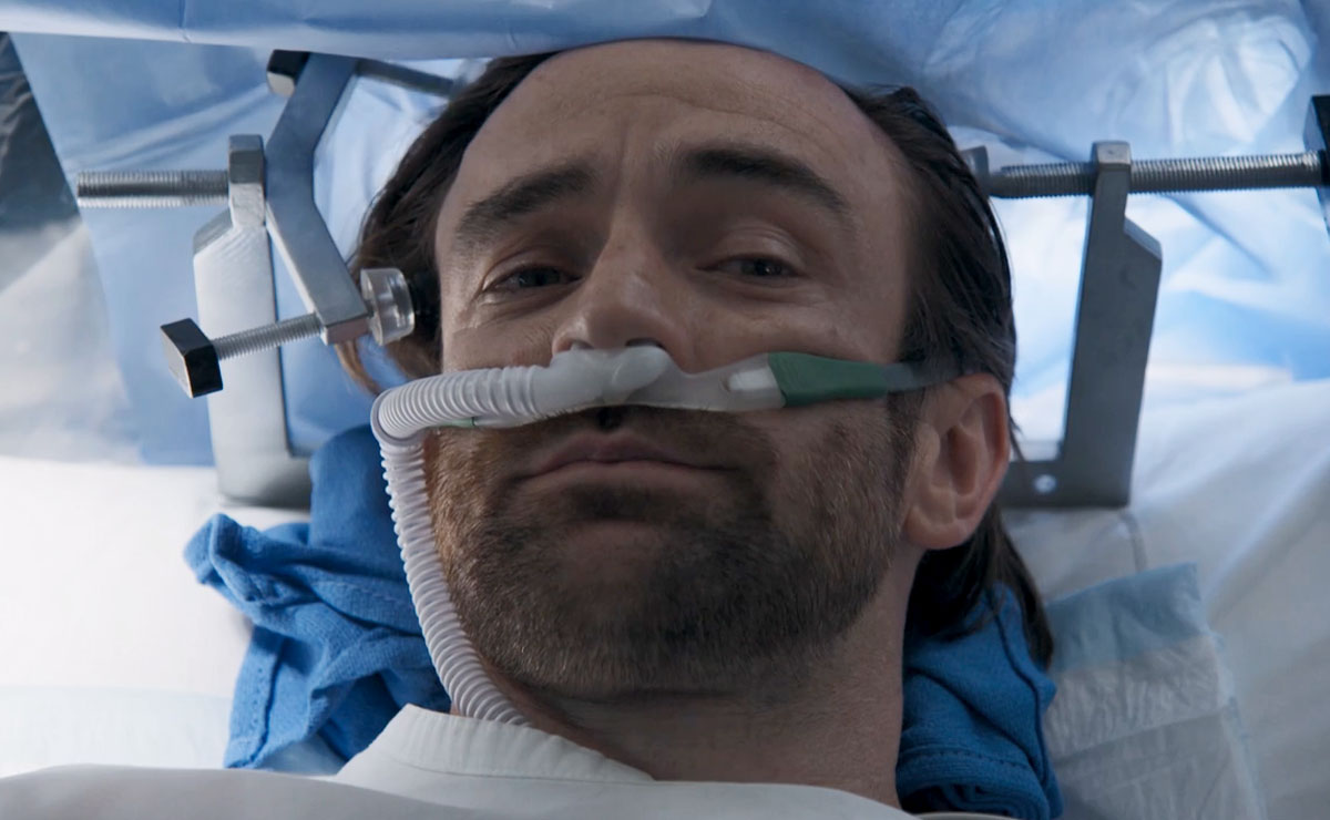 In theatre, Dr Swan instructed the anaesthesiologist (Sam O’Sullivan) to put Remi under, so she could secure the frame that would hold his head firmly in position during the operation.