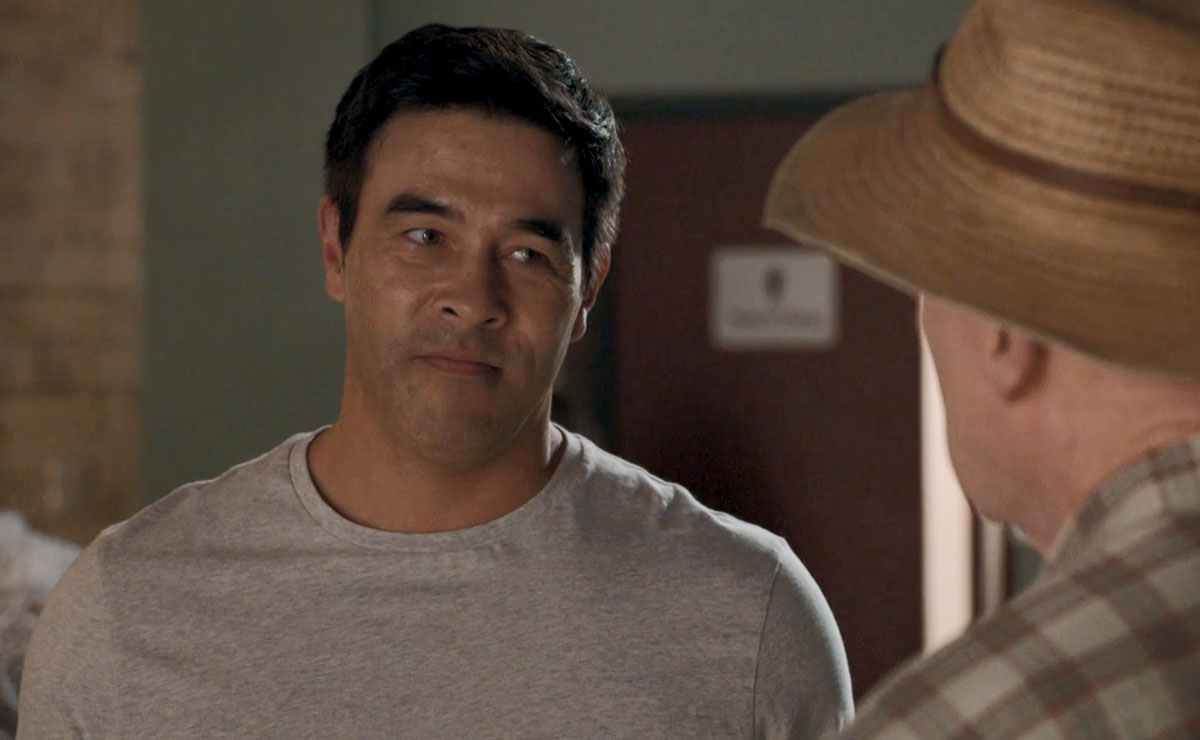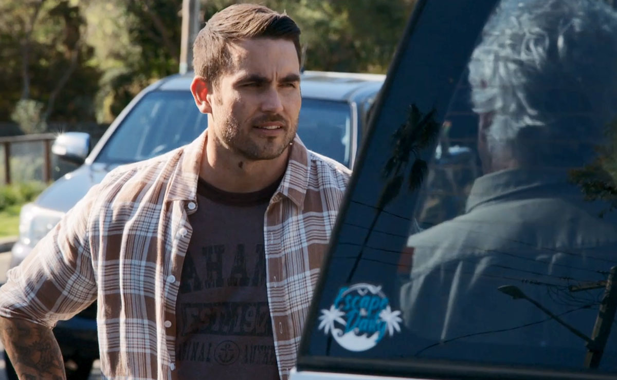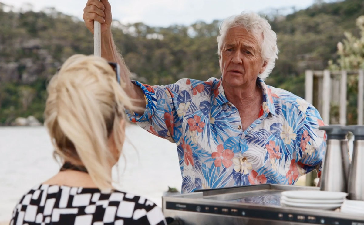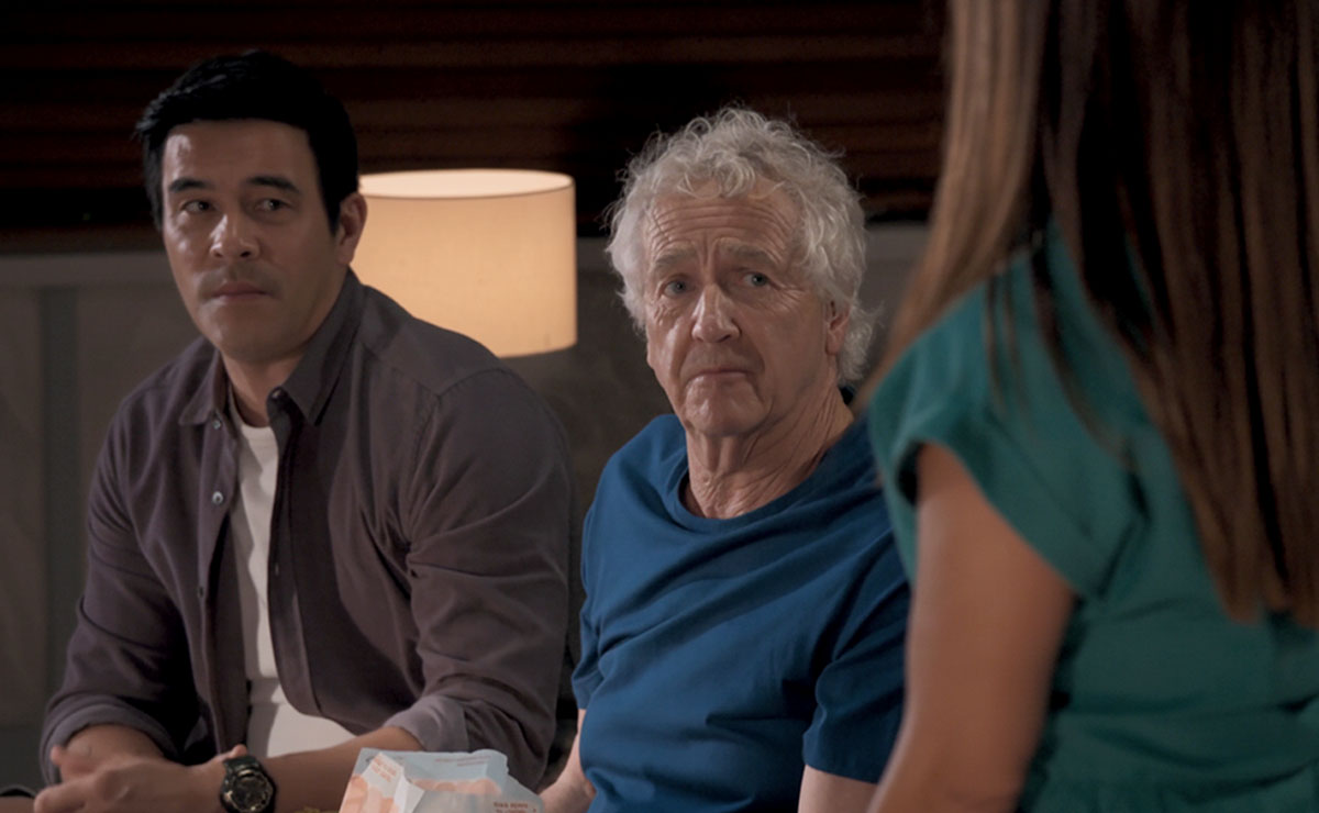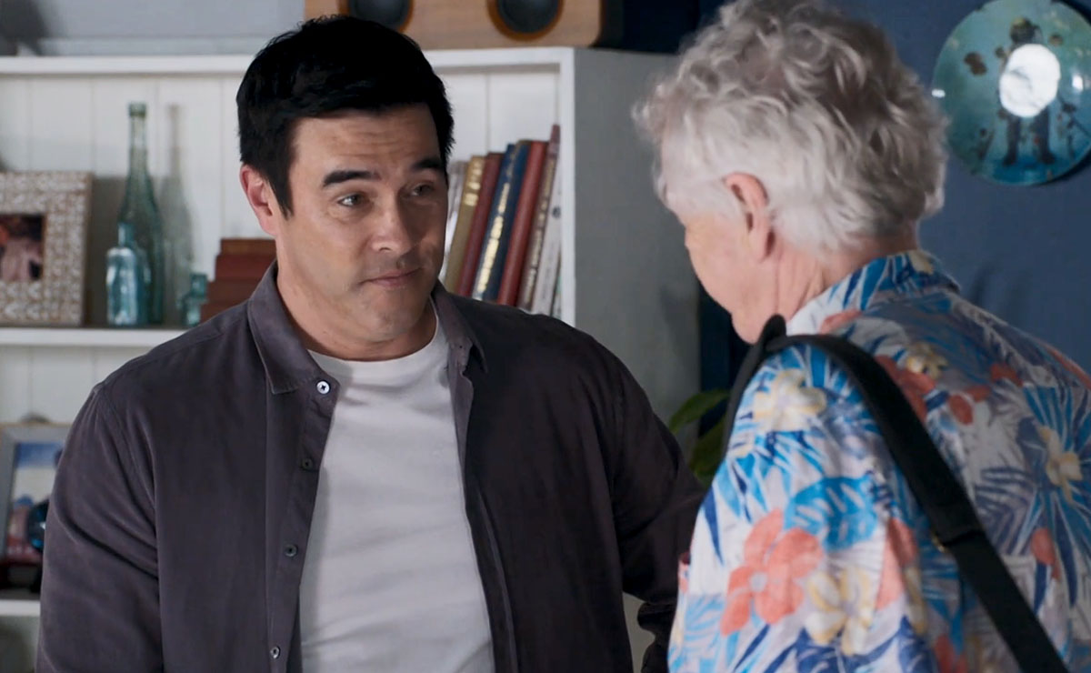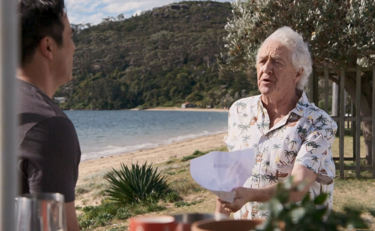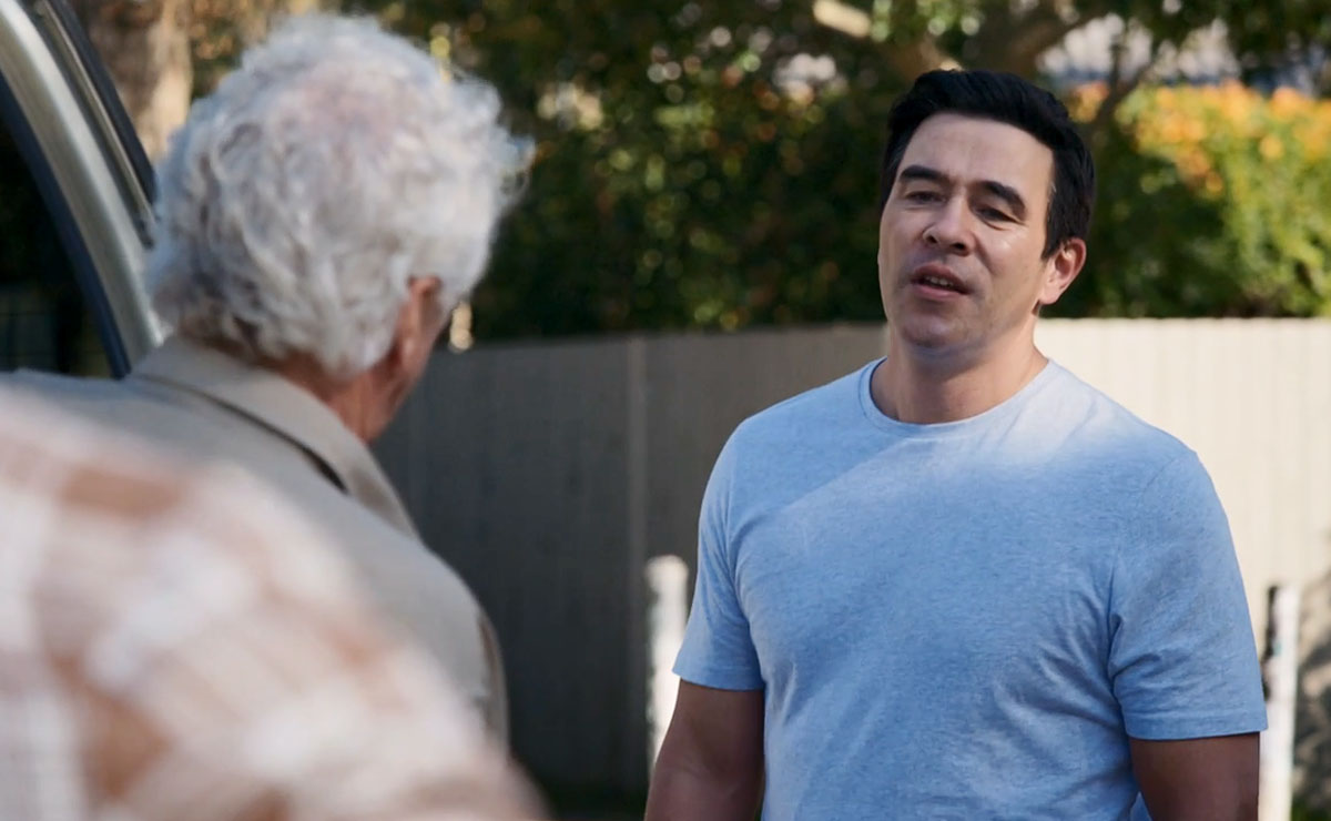 That evening, Justin runs into Alf (Ray Meagher) and tells him about John’s reno plans, admitting he already feels a bit guilty for leaving John to it.