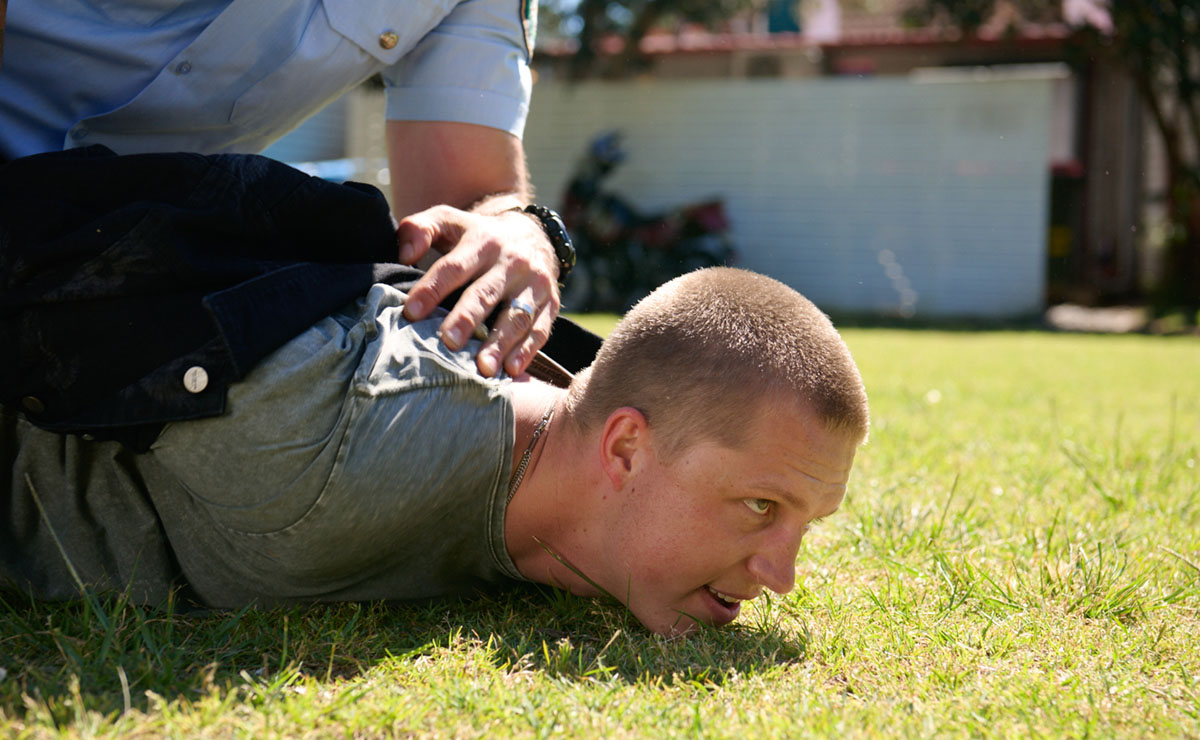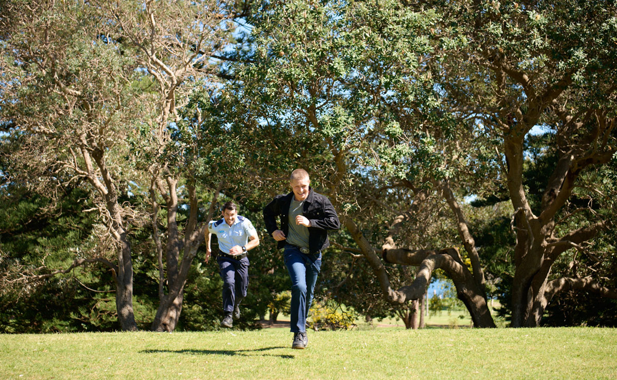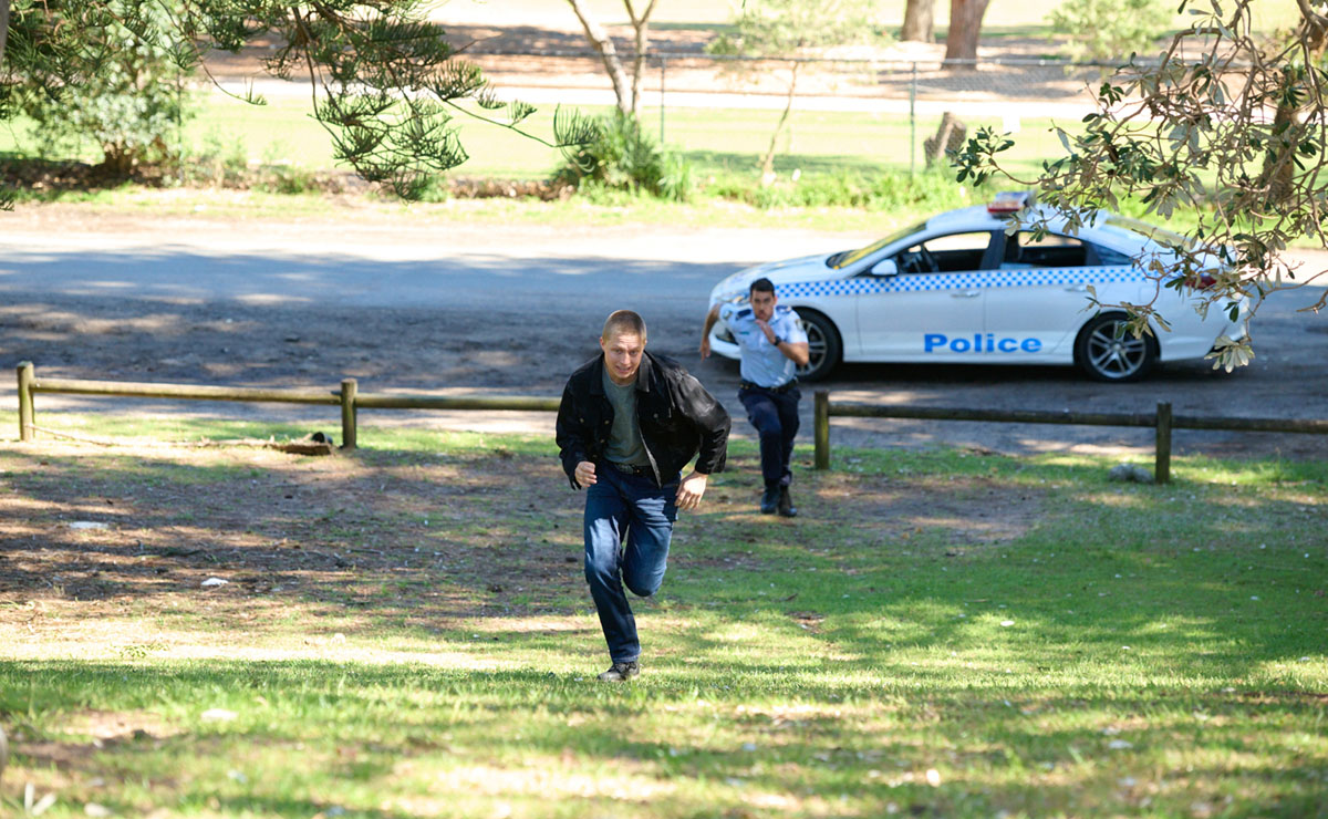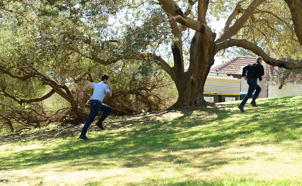 It only takes Cash a matter of seconds to catch up to Holden, as he tackles him to the ground and places him under arrest.