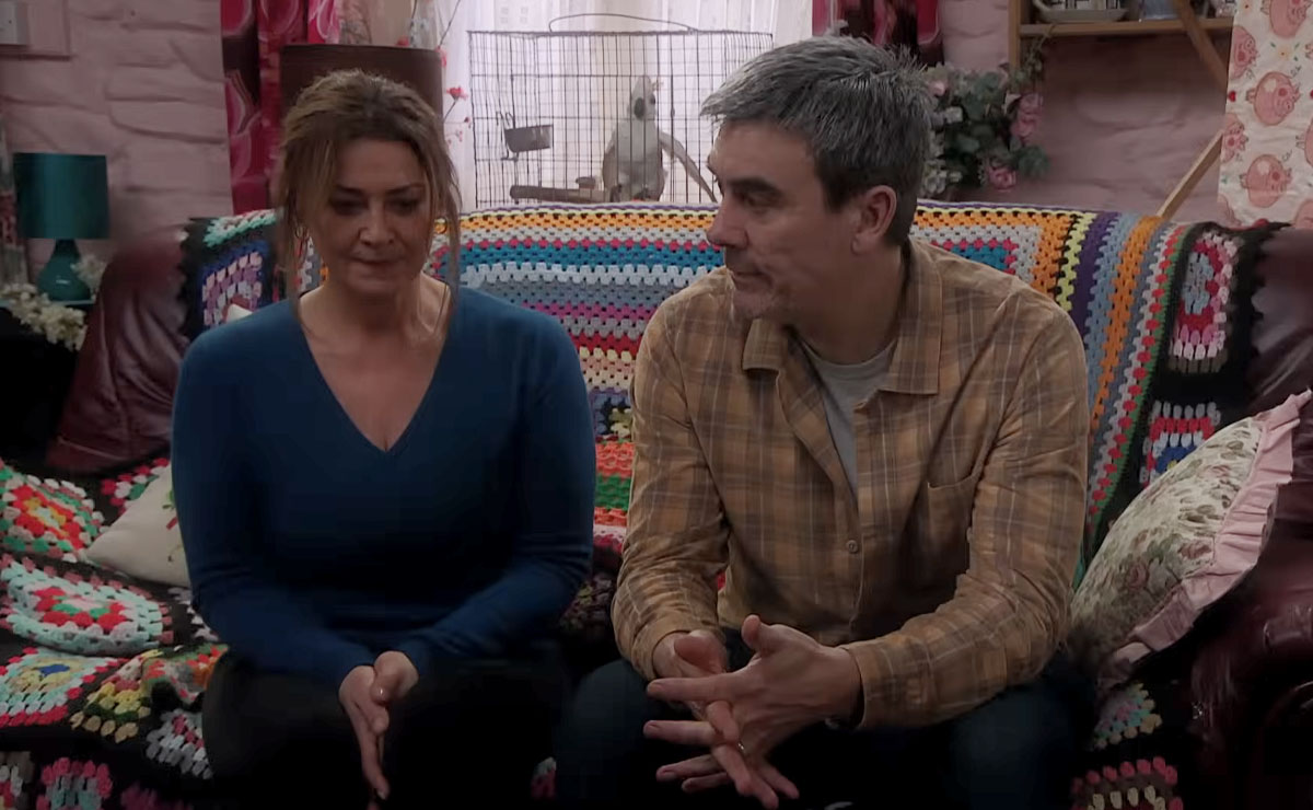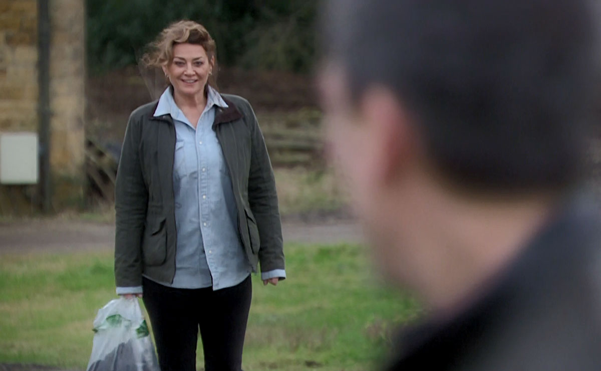 Over at Wishing Well, things are far from idyllic for Moira (Natalie J Robb) and Cain (Jeff Hordley) following her release from prison.