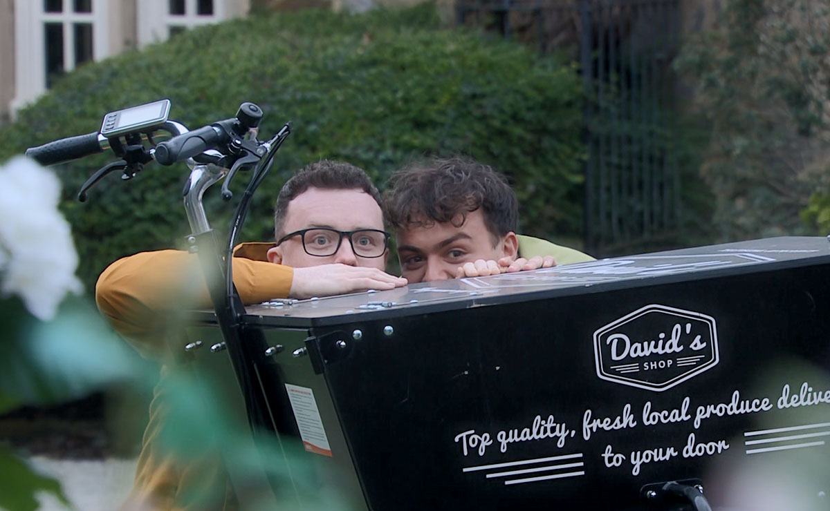 Having opted to bring in an outside supplier, Charity is left scrambling when the baker calls to say she’s unable to deliver, forcing her to head out with Mack to collect it themselves. In the rush to get going, they leave without any way of contacting anyone—Charity hands her phone over to be charged before they leave, whilst Mack inadvertently leaves his behind too.