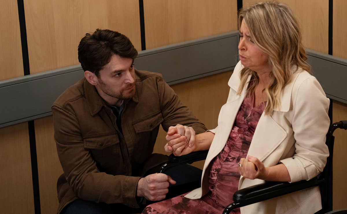 When she and Chas (Lucy Pargeter) both spot a series of missed calls on their phones, Sarah heads to the hospital—only for confusion to deepen when there’s no record of Charity having arrived.