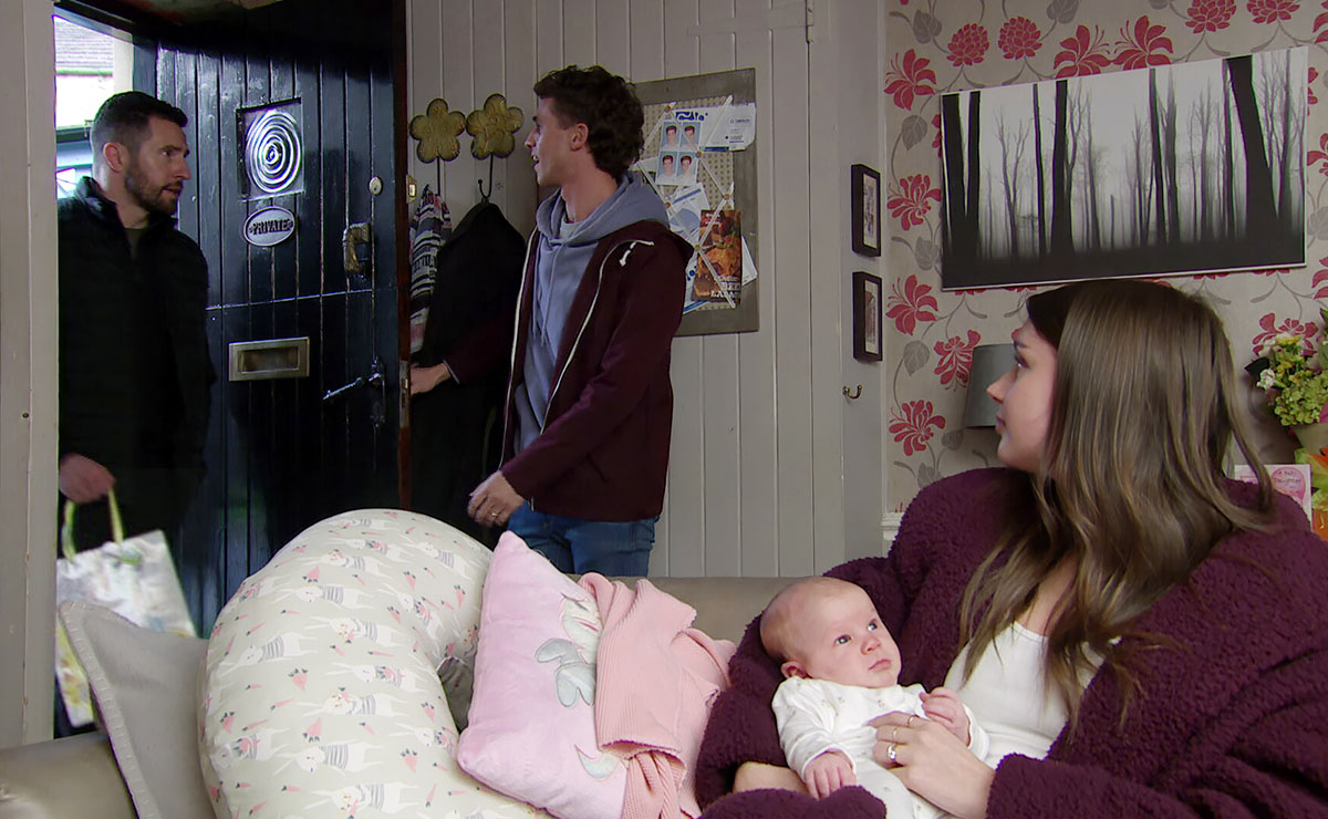 When young daughter Eve hears gossip about Paddy’s situation, she is left upset and confused, prompting Paddy to sit her down and explain that he may have to go to prison for helping grandad Bear (Joshua Richards).