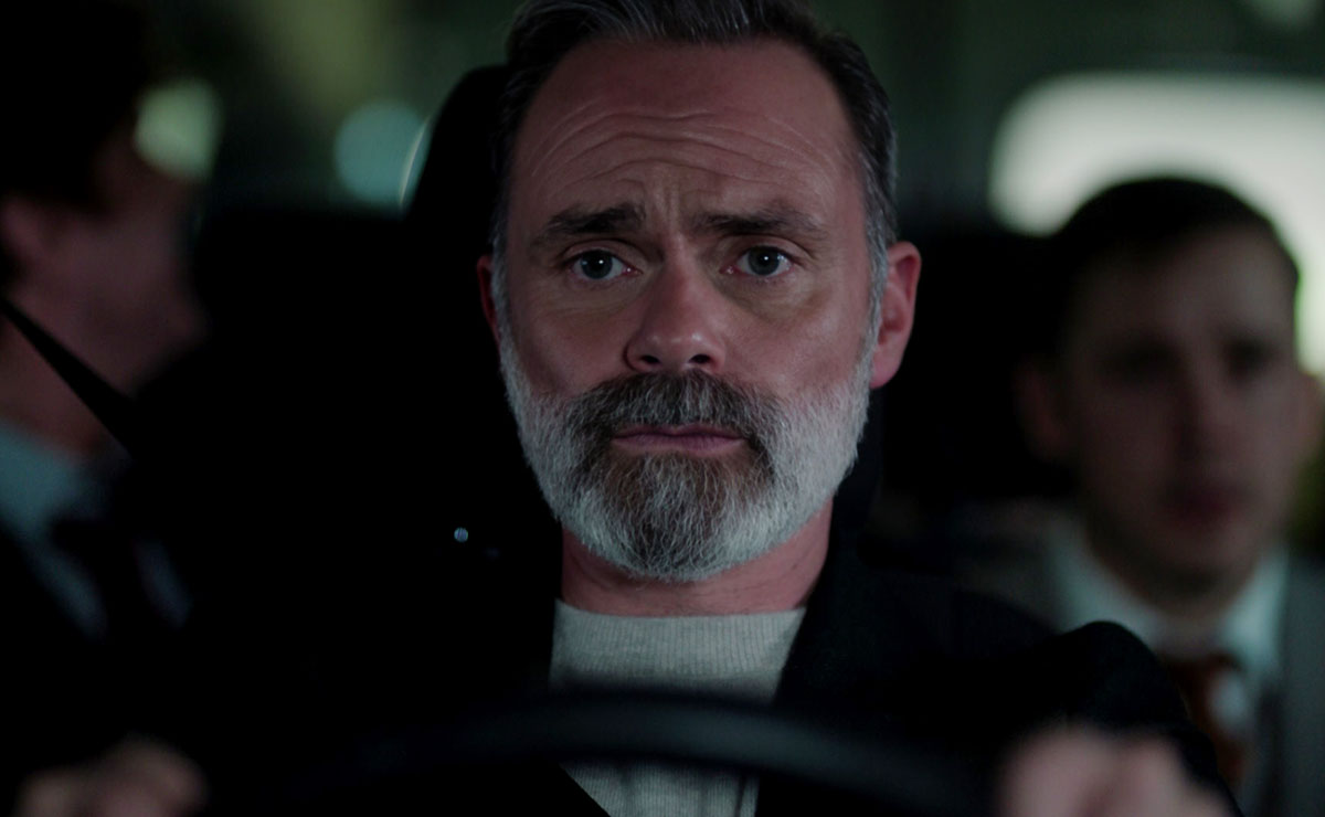 Having been knocked out earlier by Aaron, as an attempt to stop him shooting John and spending the rest of his life in prison, Robert is on their tail after persuading Joe (Ned Porteous) to drive after them.